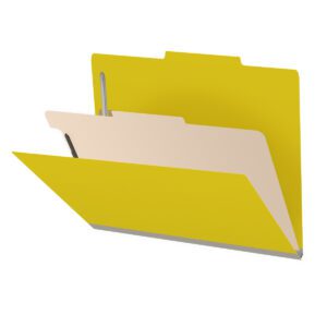 These 25 pt pressboard folders come with 2 filing sections. The front and back panels have standard 2″ metal prong 2-hole document bonded fasteners. They also feature a 2/5 cut right-of-center top tab for filing in drawers and a 2″ Tyvek expansion.