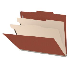 Top Tab Classification Folder, 2″ Expansion, Letter Size, 2 Dividers, Brick Red (Box of 10)