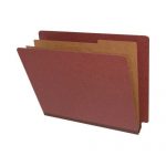These classification folders are made of 25 pt pressboard and come with 6 filing sections. The front and back panels have standard 2″ metal prong 2-hole document bonded fasteners. The 18 pt manila dividers have 1″ dual prong 2-hole document fasteners in positions #1 and #3. These folders also feature 1/3 cut side tabs in positions #2 and #3 for filing in drawers and a 2″ Tyvek expansion.